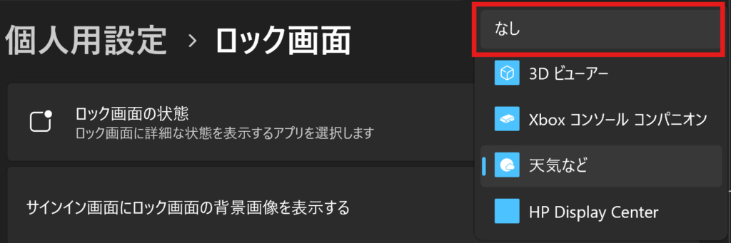 続いて、ロック画面に表示されている「天気など」の情報を消す方法です。