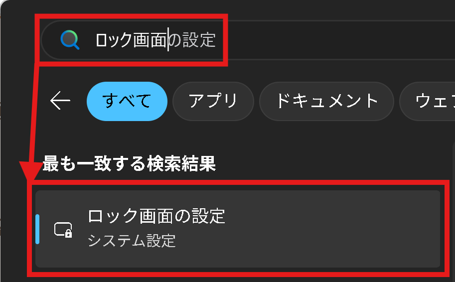 Windowsキーを押して、「ロック画面」と入力し、Enter。