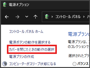 左側のメニューにある 「カバーを閉じたときの動作を選択する」 を開きましょう。