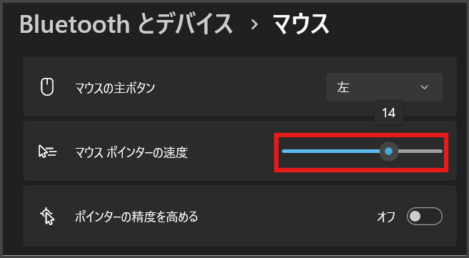 僕は「14」で使っています。速度が遅すぎると広い画面でポインターを動かすのがしんどくなり、速すぎると細かい操作がしづらくなります。まずは一気に変えて、少しずつ自分にしっくりくる速度を探してみてください!