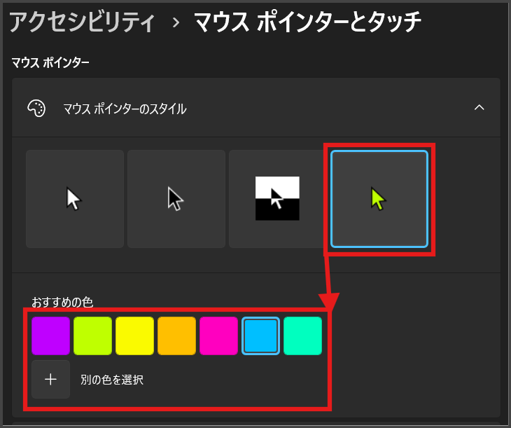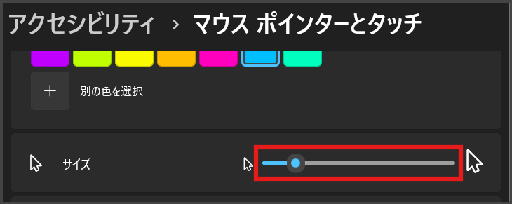 マウスポインターの色とサイズの設定