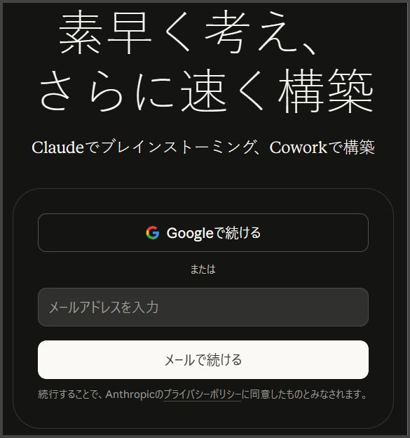 ひとまずログインしましょう。僕はいつも通りメールアドレスでログイン。