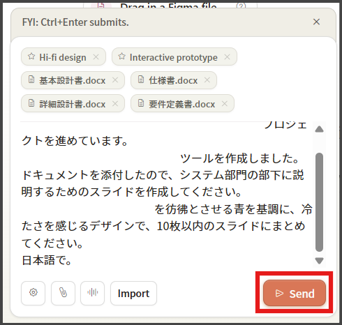 ひとまず、プロジェクトに必要なツールをClaudeで開発してたので、Claudeでドキュメント化してもらったWordファイルを使います。ClaudeでDesignしてもらいましょう。Claude依存症患者。