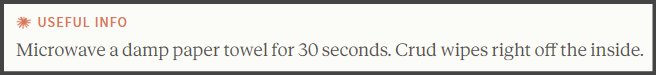 電子レンジで湿らせたペーパータオルを30秒加熱します。汚れは内側から簡単に拭き取れます。