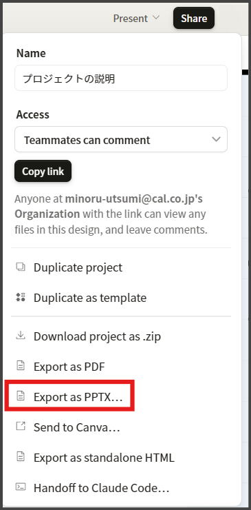 スライドを画像として出力。編集不可だが見た目は完全一致。