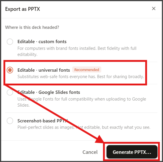 Googleスライドにアップロードする際の互換性を重視。 - 画像ベースのPPTX