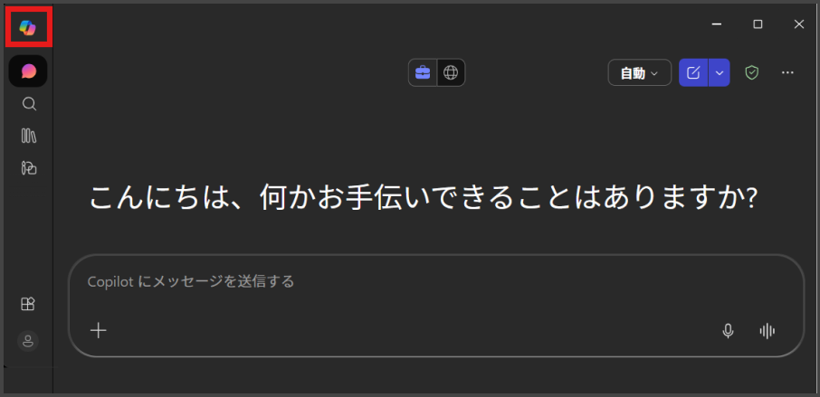まず、左上のCopilotのアイコンをクリックしてメニューを表示します。