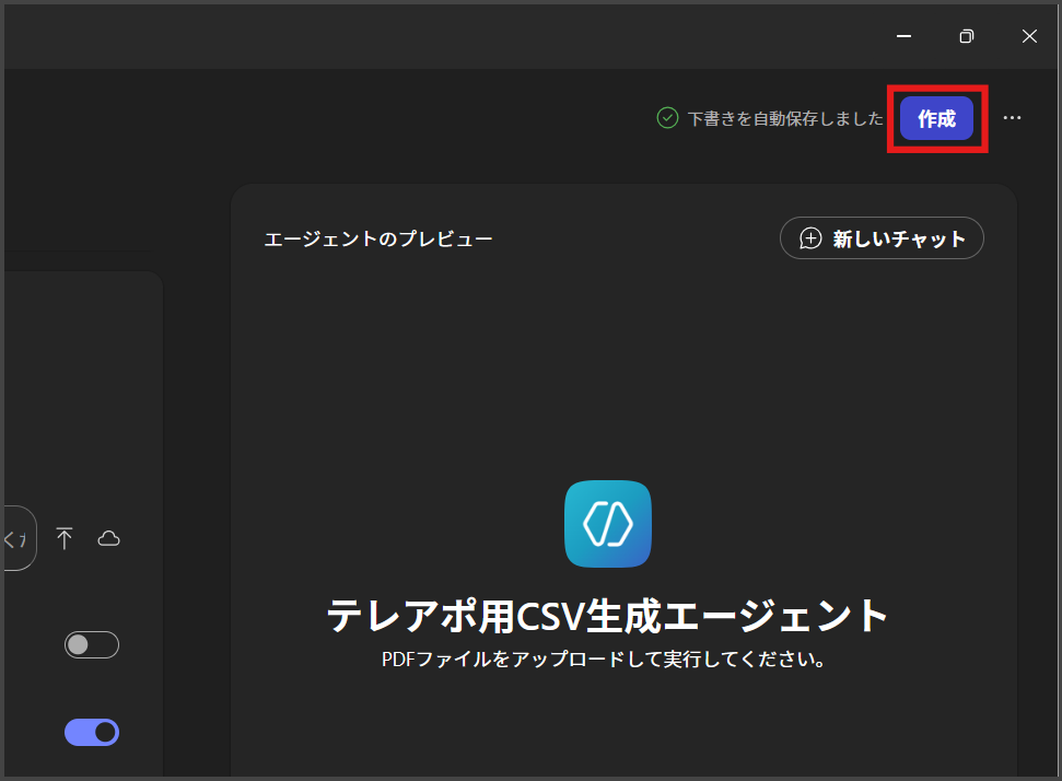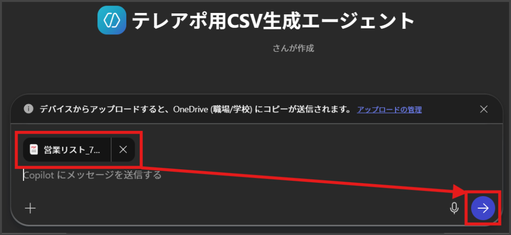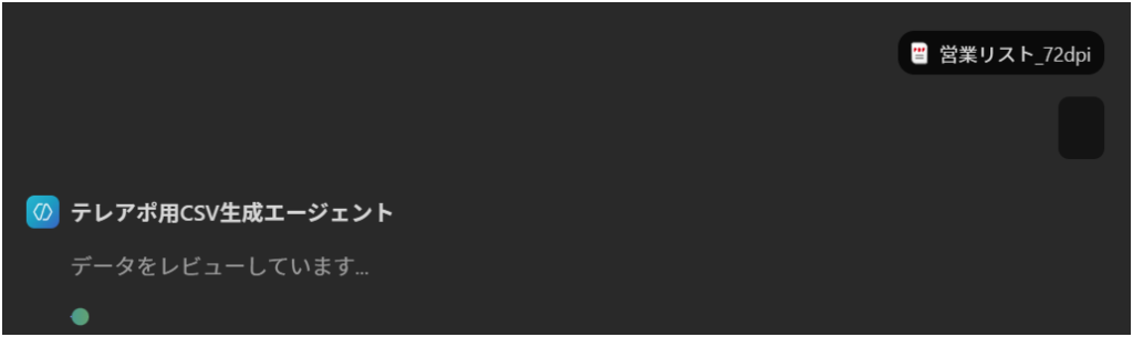 エージェントの画面になったので、営業リストの紙をスキャンしたPDFを添付して実行!