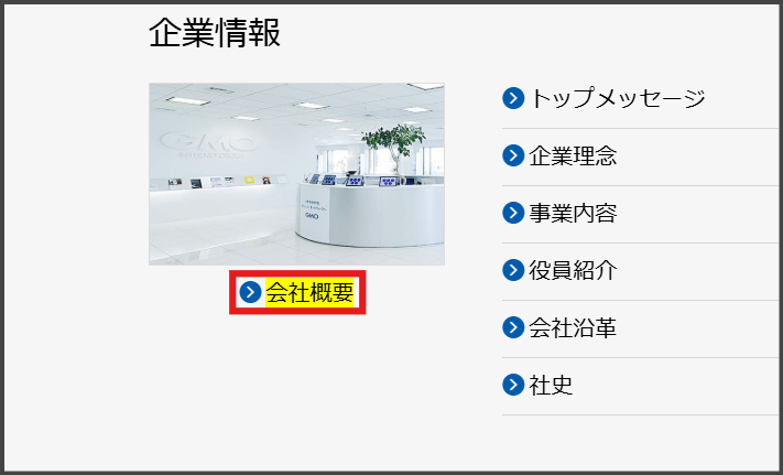 例えば、とある会社が公開している資本金が知りたいとします。会社のホームページを開いて、会社概要のページを探すべく、Ctrl+F!