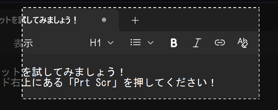Windows+Shift+Sでも同じ挙動になります。また、Alt+Prt Scrアクティブウィンドウのみをスクショすることも可能です。状況に応じて適切なキーを押しましょう!